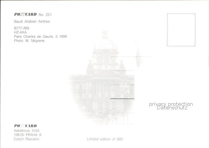 Flugzeuge Zivil Saudi Arabian Airlines B777-268 HZ-AKA postalisch nicht gelaufen Erhaltung siehe scans