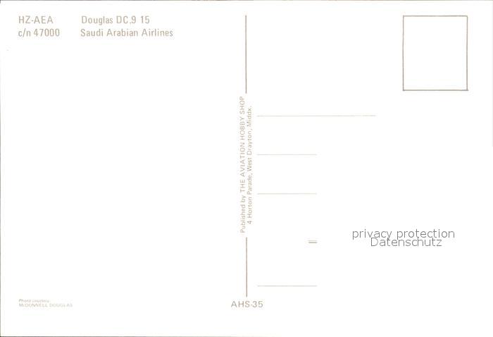 Flugzeuge Zivil Saudi Arabian Airlines Douglas DC-9-15 HZ-AEA c/n 47000 postalisch nicht gelaufen Erhaltung siehe scans