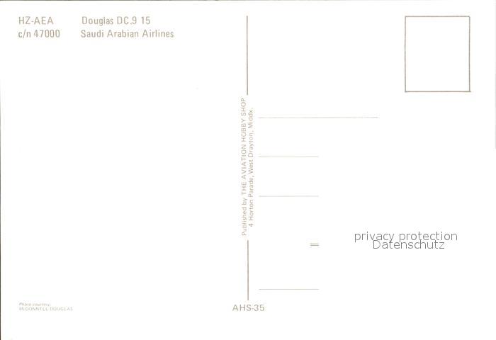 Flugzeuge Zivil Saudi Arabian Airlines Douglas DC-9-15 HZ-AEA c/n 47000 postalisch nicht gelaufen Erhaltung siehe scans