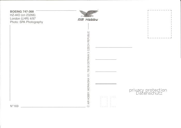 Flugzeuge Zivil Saudi Arabian Boeing 747-368 HZ-AIO cn 23266 postalisch nicht gelaufen Erhaltung siehe scans