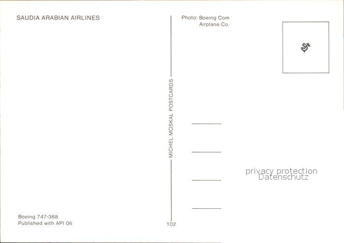 Flugzeuge Zivil Saudia Arabian Airlines Boeing 747-368 postalisch nicht gelaufen Erhaltung siehe scans
