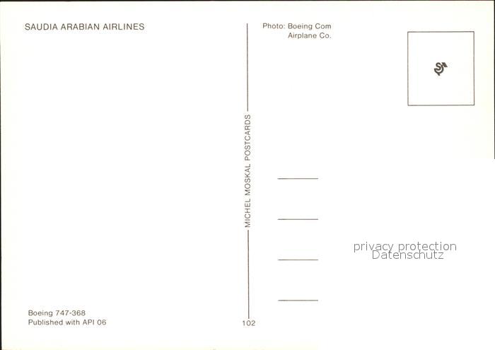 Flugzeuge Zivil Saudia Arabian Airlines Boeing 747-368 postalisch nicht gelaufen Erhaltung siehe scans