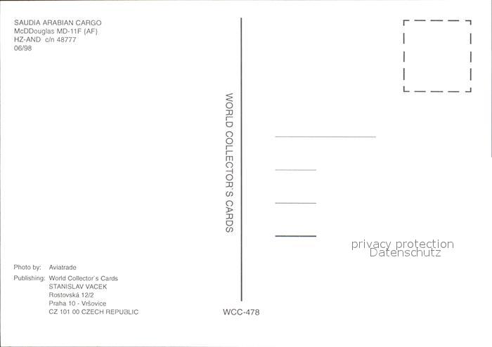 Flugzeuge Zivil Saudia Arabian Cargo McDDouglas MD-11F HZ-AND c/n 48777 postalisch nicht gelaufen Erhaltung siehe scans