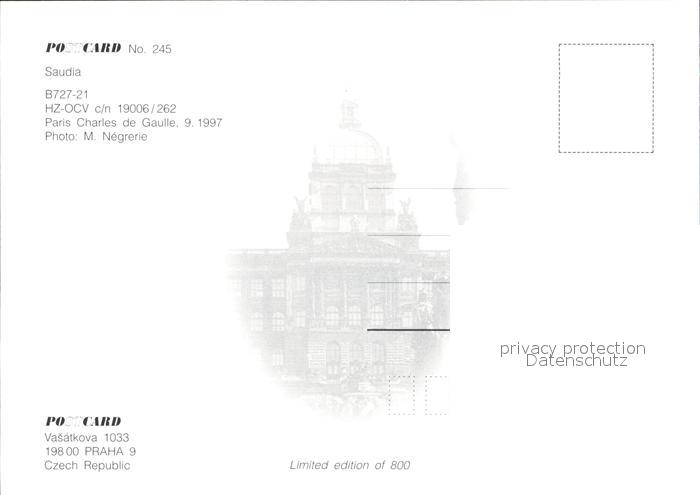 Flugzeuge Zivil Saudia B727-21 HZ-OCV c/n 19006/262 postalisch nicht gelaufen Erhaltung siehe scans