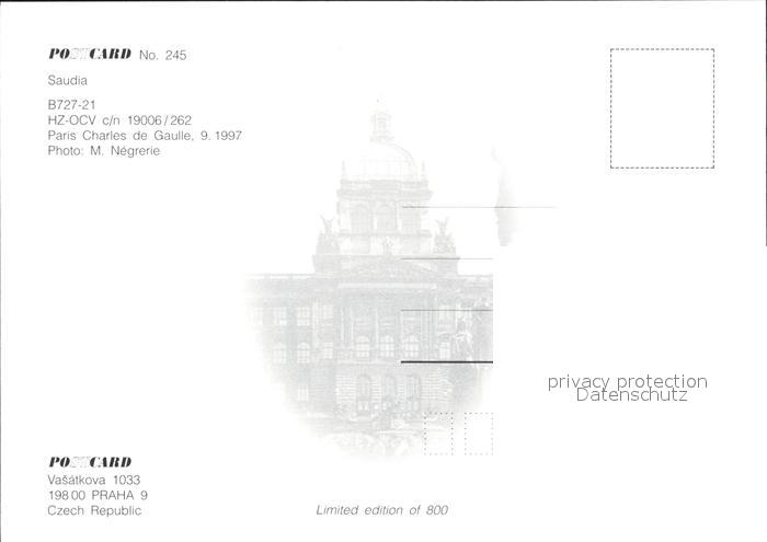Flugzeuge Zivil Saudia B727-21 HZ-OCV c/n 19006/262 postalisch nicht gelaufen Erhaltung siehe scans