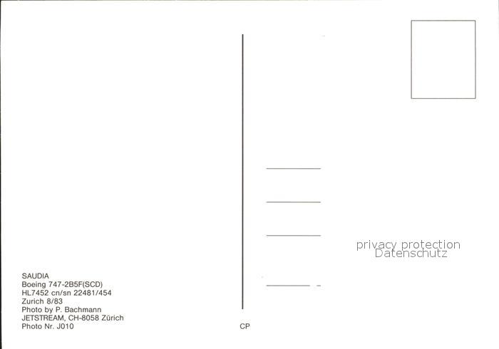 Flugzeuge Zivil Saudia Boeing 747-2B5F SCD HL7452 cn/sn 22481/454 postalisch nicht gelaufen Erhaltung siehe scans