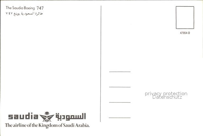 Flugzeuge Zivil Saudia Boeing 747 postalisch nicht gelaufen Erhaltung siehe scans