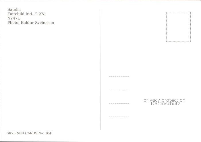Flugzeuge Zivil Saudia Fairchild Ind. F-27J N747L postalisch nicht gelaufen Erhaltung siehe scans