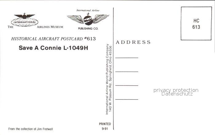 Flugzeuge Zivil Save a Connie L-1049H postalisch nicht gelaufen Erhaltung siehe scans