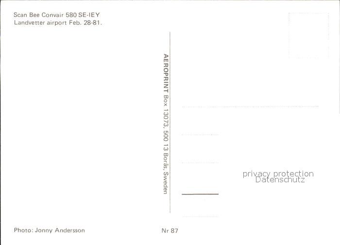 Flugzeuge Zivil ScanBee Convair 580 SE-IEY postalisch nicht gelaufen Erhaltung siehe scans