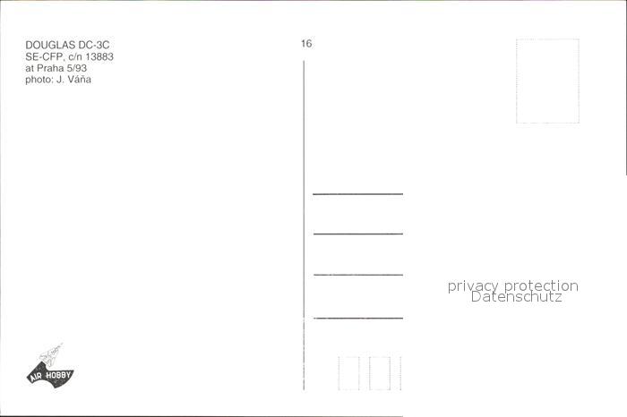 Flugzeuge Zivil Scandinavian Douglas DC-3C SE-CFP c/n 13883 postalisch nicht gelaufen Erhaltung siehe scans