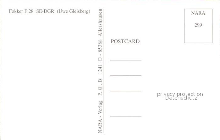 Flugzeuge Zivil Scandinavian SAS Fokker F-28 SE-DGR postalisch nicht gelaufen Erhaltung siehe scans