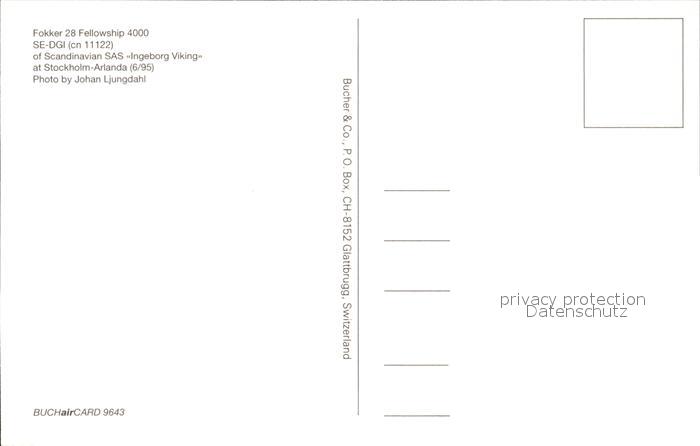Flugzeuge Zivil Scandinavian SAS Ingeborg Viking Fokker 28 Fellowship 4000 SE-DGI cn 11122 postalisch nicht gelaufen Erhaltung siehe scans