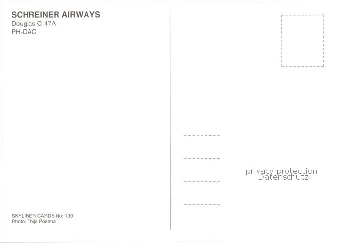 Flugzeuge Zivil Schreiner Airways Douglas C-47A PH-DAC postalisch nicht gelaufen Erhaltung siehe scans