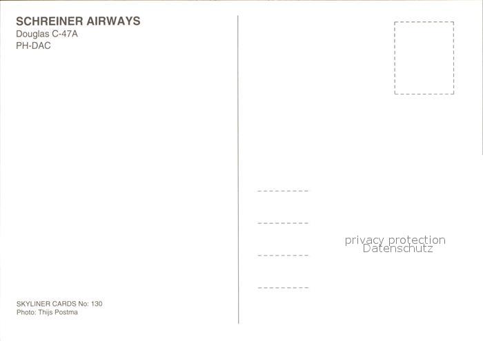 Flugzeuge Zivil Schreiner Airways Douglas C-47A PH-DAC postalisch nicht gelaufen Erhaltung siehe scans