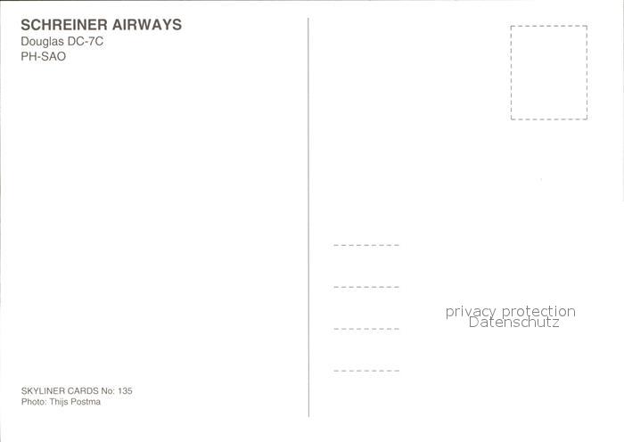 Flugzeuge Zivil Schreiner Airways Douglas DC-7C PH-SAO postalisch nicht gelaufen Erhaltung siehe scans