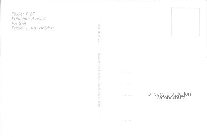 Flugzeuge Zivil Schreiner Airways Fokker F-27 PH-SFA postalisch nicht gelaufen Erhaltung siehe scans