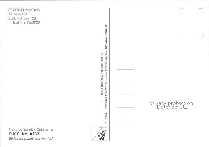 Flugzeuge Zivil Scorpio Aviation ATR-42-300 SU-BMU c/n 128 postalisch nicht gelaufen Erhaltung siehe scans