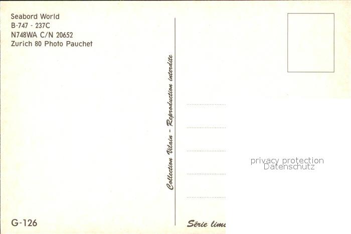 Flugzeuge Zivil Seabord World B-747-237C N748WA C/N 20652 postalisch nicht gelaufen Erhaltung siehe scans