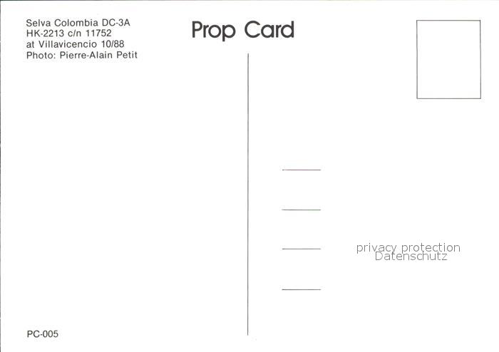 Flugzeuge Zivil Selva Colombia DC-3A HK-2213 c/n 11752 postalisch nicht gelaufen Erhaltung siehe scans