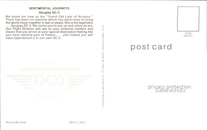 Flugzeuge Zivil Sentimental Journeys Douglas DC-3 N97H c/n 33613 postalisch nicht gelaufen Erhaltung siehe scans