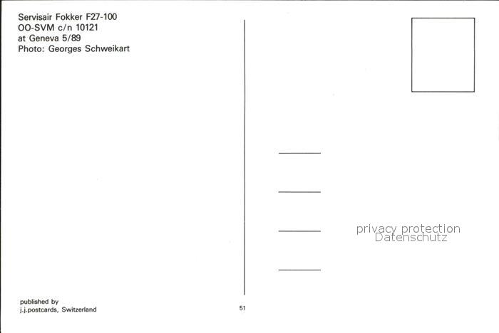 Flugzeuge Zivil Servisair Fokker F27-100 OO-SVM c/n 10121 postalisch nicht gelaufen Erhaltung siehe scans