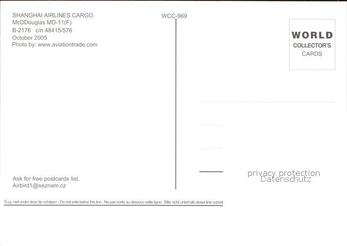 Flugzeuge Zivil Shanghai Airlines Cargo McDDouglas MD-11 F B-2176 c/n 48415/576 postalisch nicht gelaufen Erhaltung siehe scans
