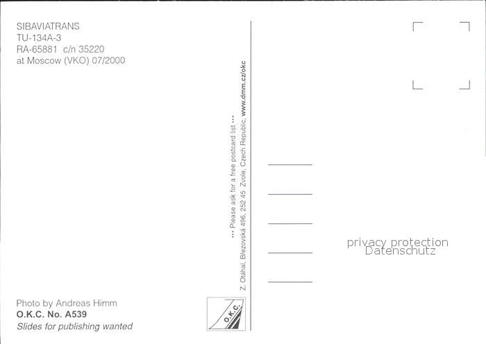 72282672 Flugzeuge Zivil Sibaviatrans TU-134A-3 RA-65881 c/n 35220 KatCode 22120000001300