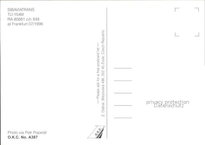 Flugzeuge Zivil Sibaviatrans TU-154M RA-85681 c/n 848 postalisch nicht gelaufen Erhaltung siehe scans