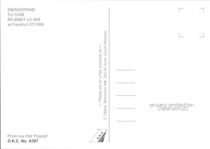 72271174 Flugzeuge Zivil Sibaviatrans TU-154M RA-85681 c/n 848 KatCode 22120000001300