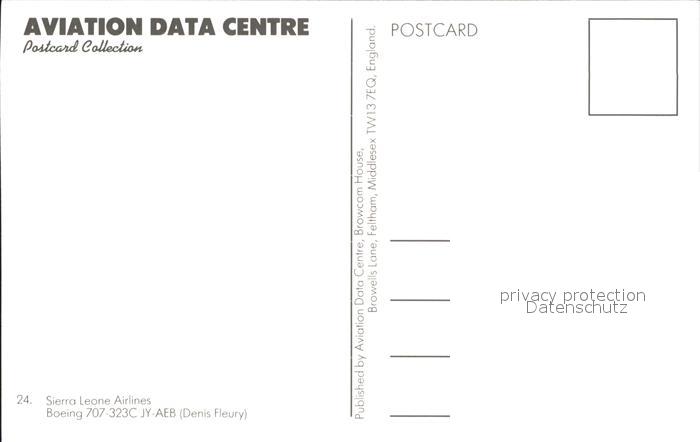 Flugzeuge Zivil Sierra Leone Airlines Boeing 707-323C JY-AEB postalisch nicht gelaufen Erhaltung siehe scans