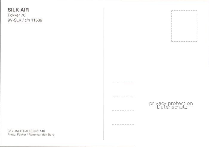 Flugzeuge zivil Silk Air Fokker 70 9V-SLK c/n 11536 postalisch nicht gelaufen Erhaltung siehe scans