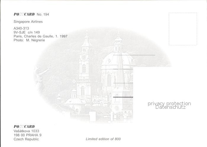 Flugzeuge Zivil Singapore Airlines A340-313 9V-SJE Paris CDG postalisch nicht gelaufen Erhaltung siehe scans