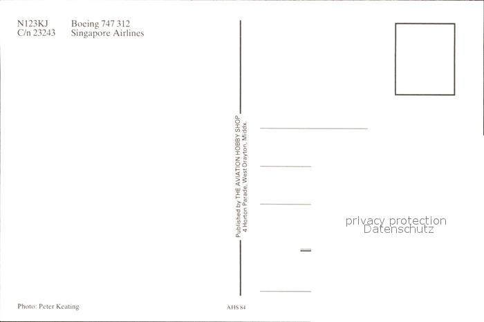 Flugzeuge Zivil Singapore Airlines Boeing 737 312 N123KJ C/n23243 postalisch nicht gelaufen Erhaltung siehe scans