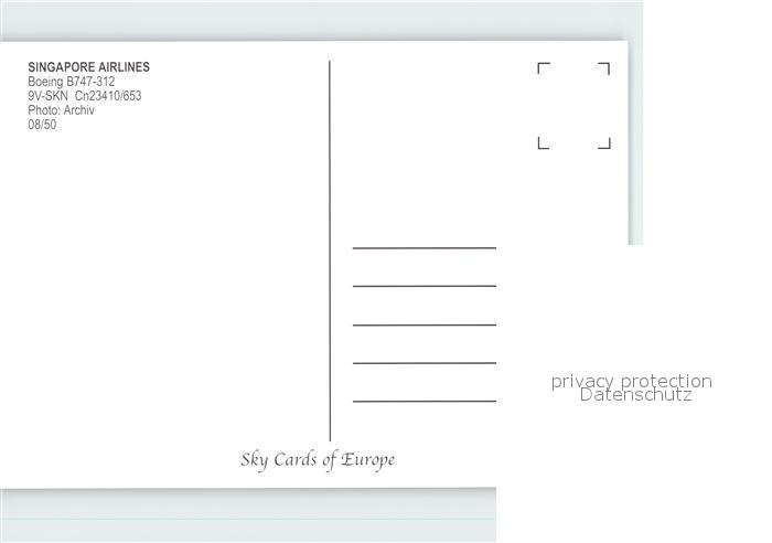Flugzeuge Zivil Singapore Airlines Boeing 747-312 9V-SKN Cn 23410/653 postalisch nicht gelaufen Erhaltung siehe scans