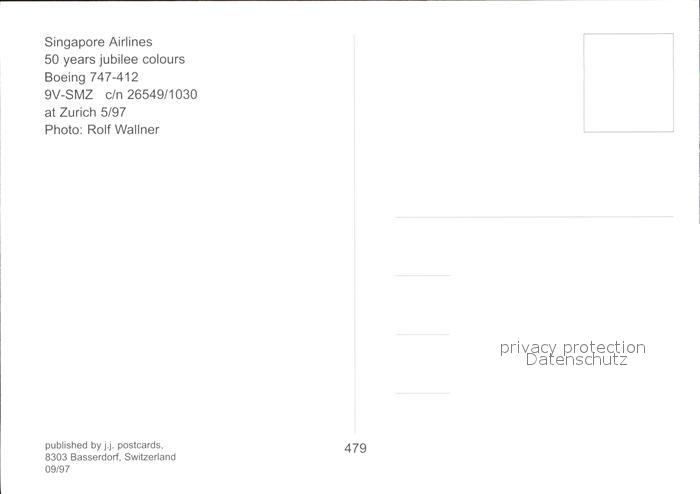 Flugzeuge Zivil Singapore Airlines Boeing 747-412 9V-SMZ c/n 26549/1030 postalisch nicht gelaufen Erhaltung siehe scans