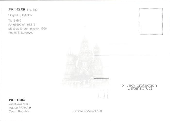 Flugzeuge Zivil Skajfild TU 134B-3 RA-65692 c/n 63215 postalisch nicht gelaufen Erhaltung siehe scans