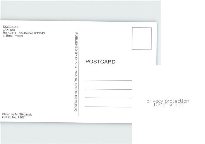 Flugzeuge Zivil Skoda Air JAK-42D RA-42411 postalisch nicht gelaufen Erhaltung siehe scans