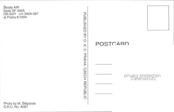 Flugzeuge Zivil SKoda Air Saab SF 340A OK-SGY c/n 340A-087 postalisch nicht gelaufen Erhaltung siehe scans