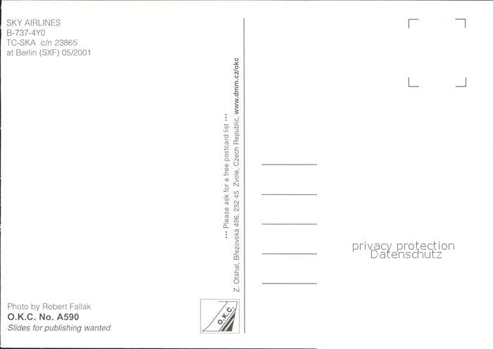 Flugzeuge Zivil Sky Airlines B-737-4Y0 TC-SKA c/n 23865 postalisch nicht gelaufen Erhaltung siehe scans