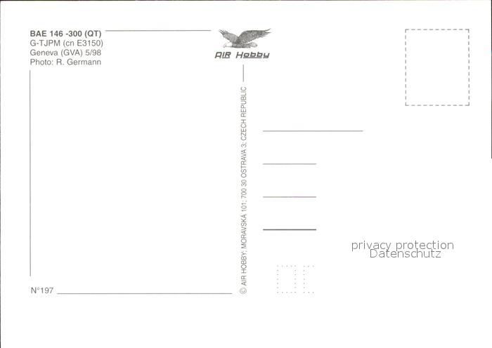 Flugzeuge Zivil Sky Pak International BAE 146-300 G-TJPM cn E3150 postalisch nicht gelaufen Erhaltung siehe scans