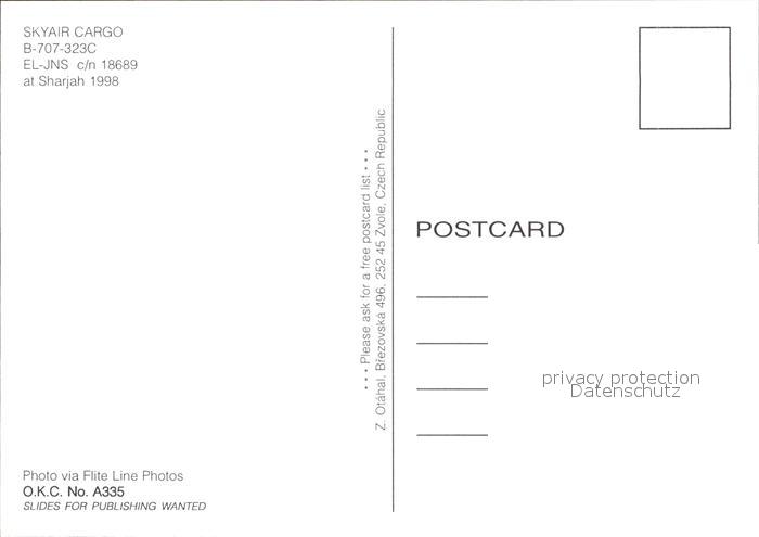 Flugzeuge Zivil Skyair Cargo B-707-323C EL-JNS postalisch nicht gelaufen Erhaltung siehe scans