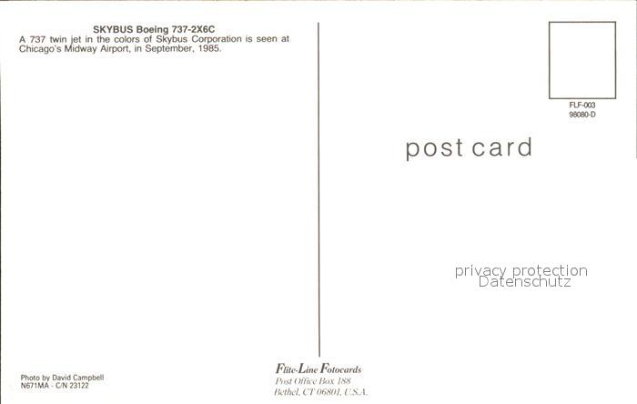 Flugzeuge Zivil Skybus Boeing 737-2X6C N671MA c/n 23122 postalisch nicht gelaufen