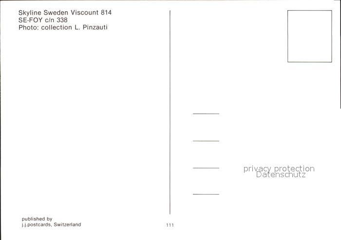 Flugzeuge Zivil Skyline Sweden Viscount 814 SE-FOY c/n 338 postalisch nicht gelaufen Erhaltung siehe scans