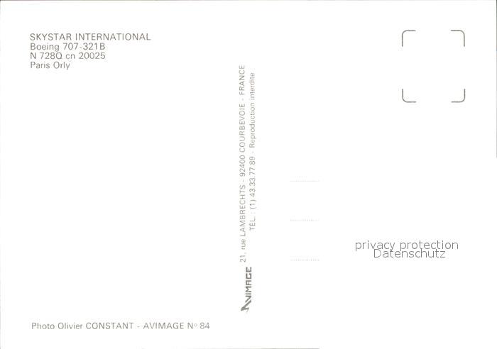 Flugzeuge Zivil Skystar International Boeing 707-321B N728Q cn20025 postalisch nicht gelaufen Erhaltung siehe scans