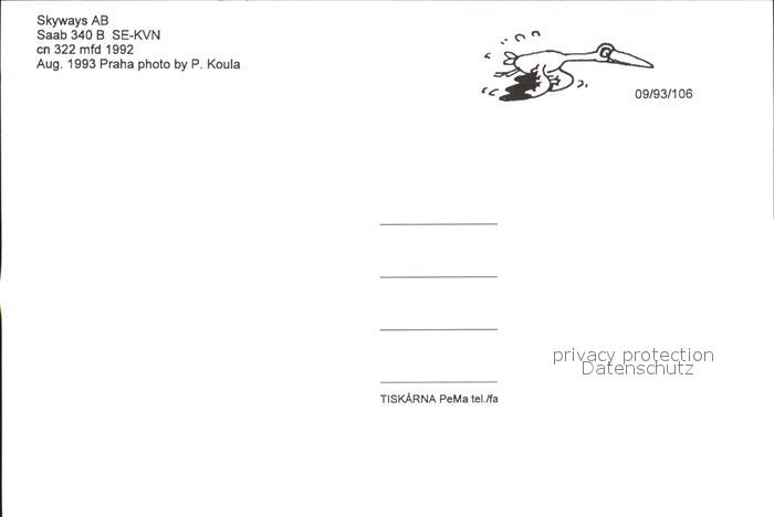 Flugzeuge Zivil Skyways AB Saab 340 B SE-KVN cn 322 postalisch nicht gelaufen Erhaltung siehe scans