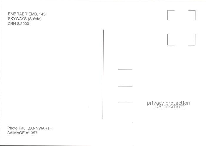 Flugzeuge Zivil Skyways Embraer 145 SE-DZC postalisch nicht gelaufen Erhaltung siehe scans