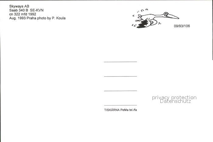 Flugzeuge Zivil Skyways Saab 340B SE-KVN cn 322 postalisch nicht gelaufen Erhaltung siehe scans