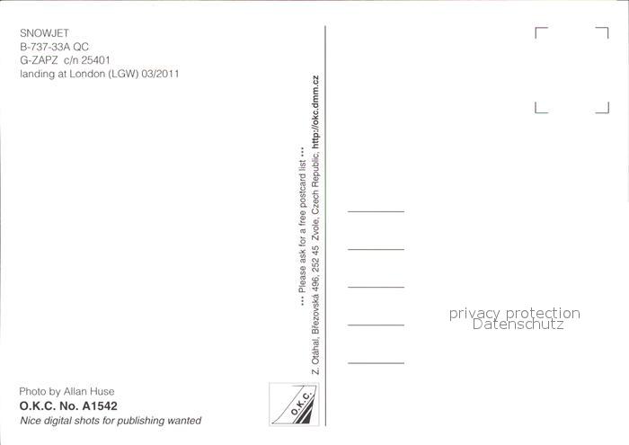 Flugzeuge Zivil Snowjet B-737-33A QC G-ZAPZ c/n 25401 postalisch nicht gelaufen Erhaltung siehe scans