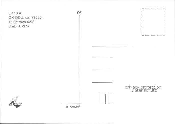 Flugzeuge zivil Solinair L 410 A OK-DDU c/n 730204 Ostrava postalisch nicht gelaufen Erhaltung siehe scans